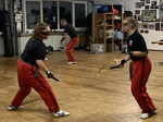 Gleichzeitig erarbeiteten sich die vier Anwärter für den 3. Dan das Thema Nervendruckpunkte unter Guro Chris. Ein weiterer Schwerpunkt wurde mit dem Thema Tres Puntas (3 Spitzen, Messer und Stock in